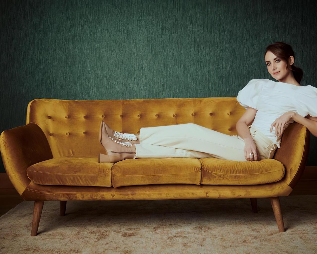 Wallpaper Actress Alison Bree is lying on the couch