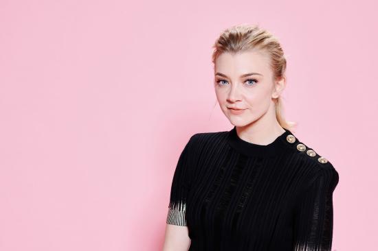 Wallpaper Actress Natalie Dormer in a black dress on a pink background