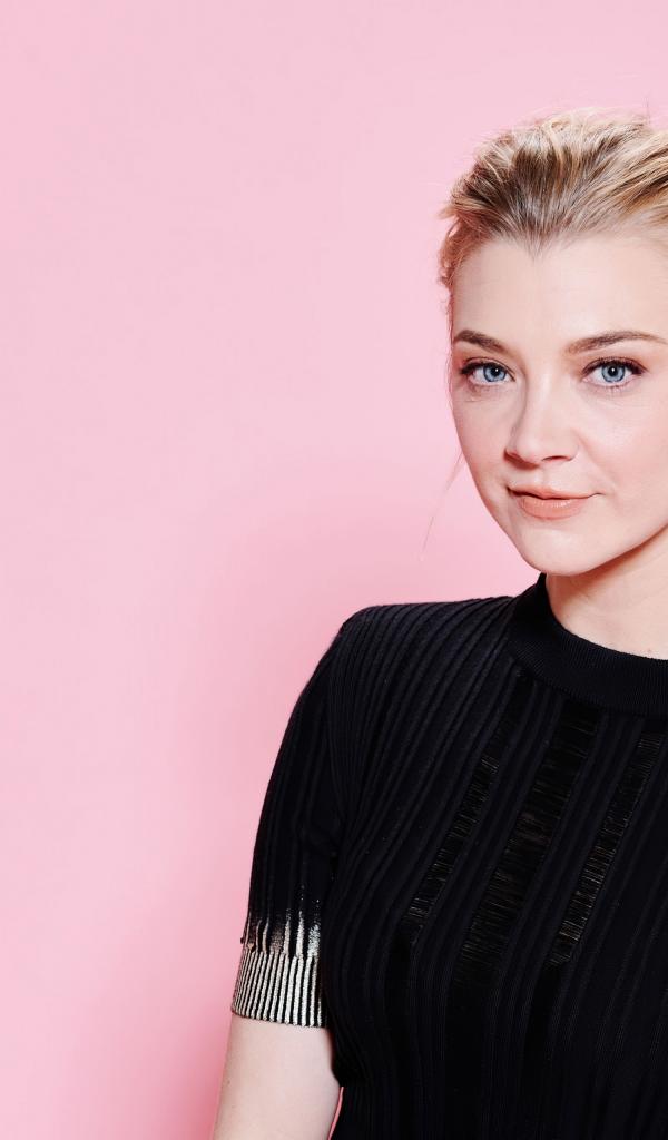 Wallpaper Actress Natalie Dormer in a black dress on a pink background