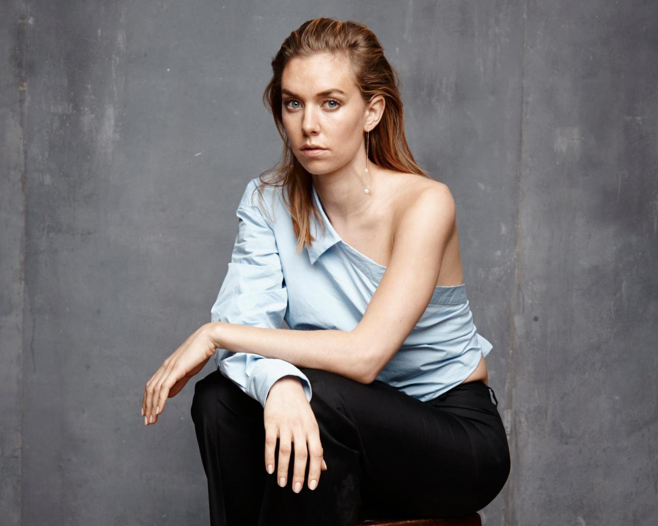 Wallpaper English actress Vanessa Kirby on a gray background