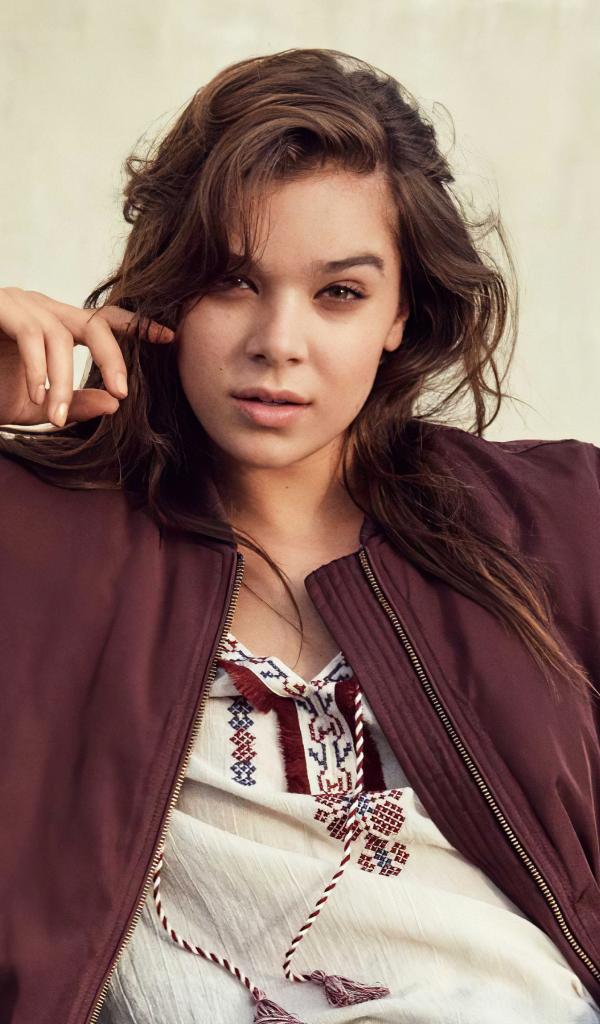 Wallpaper American actress Hayley Steinfield sits on a bench