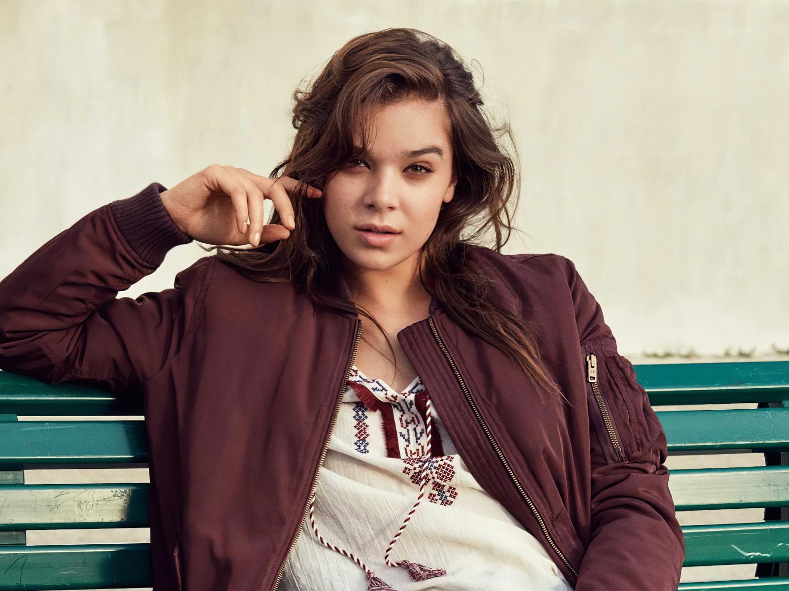 Wallpaper American actress Hayley Steinfield sits on a bench