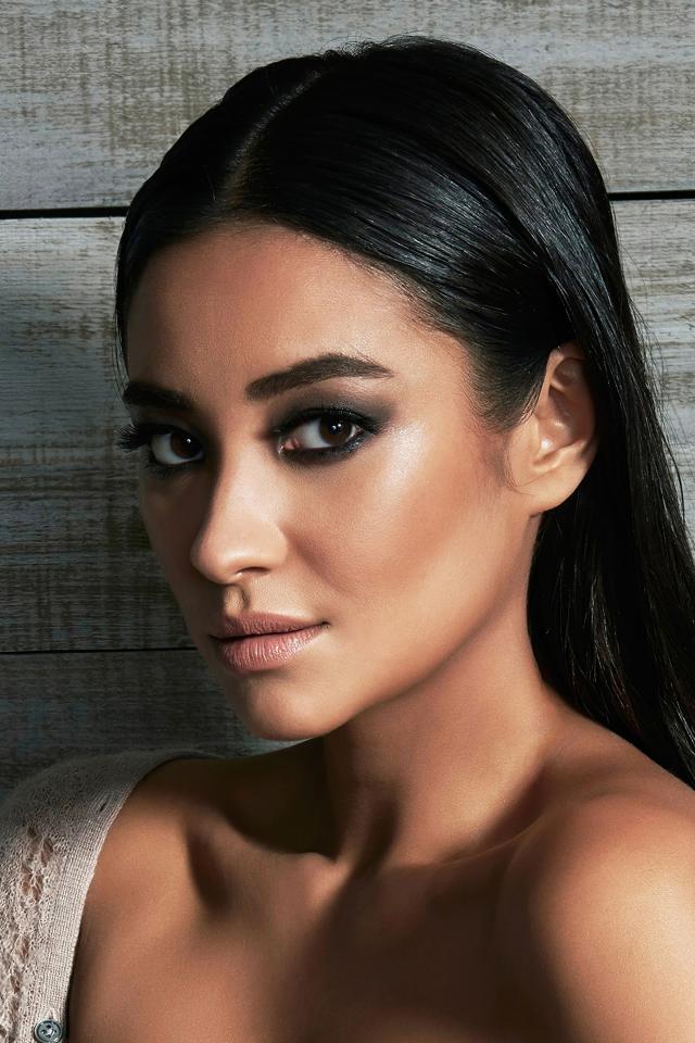 Wallpaper Canadian actress Shay Mitchell on a wooden background