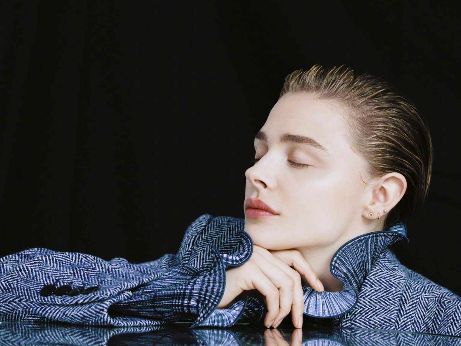 Wallpaper Actress Chloe Grace Moretz with closed eyes