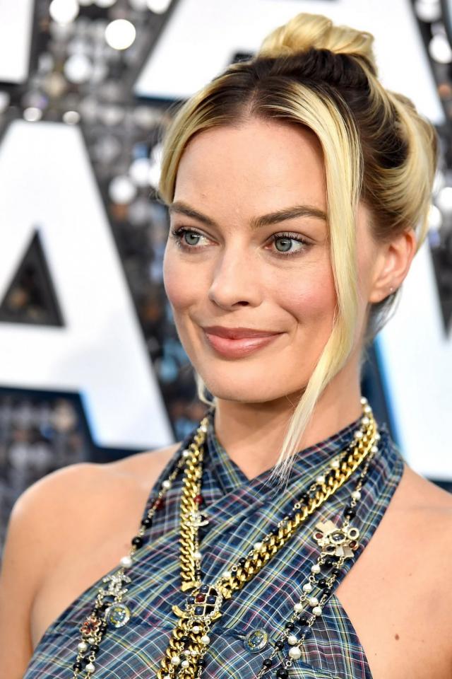 Wallpaper Stylish actress Margot Robbie with jewelry around her neck