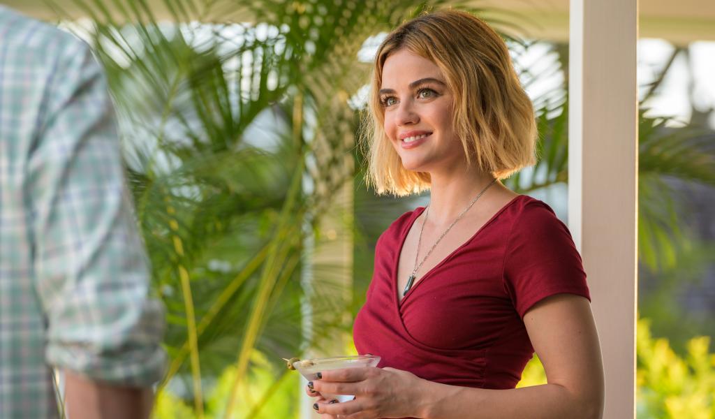 Wallpaper Smiling actress Lucy Hale with a cocktail in her hand
