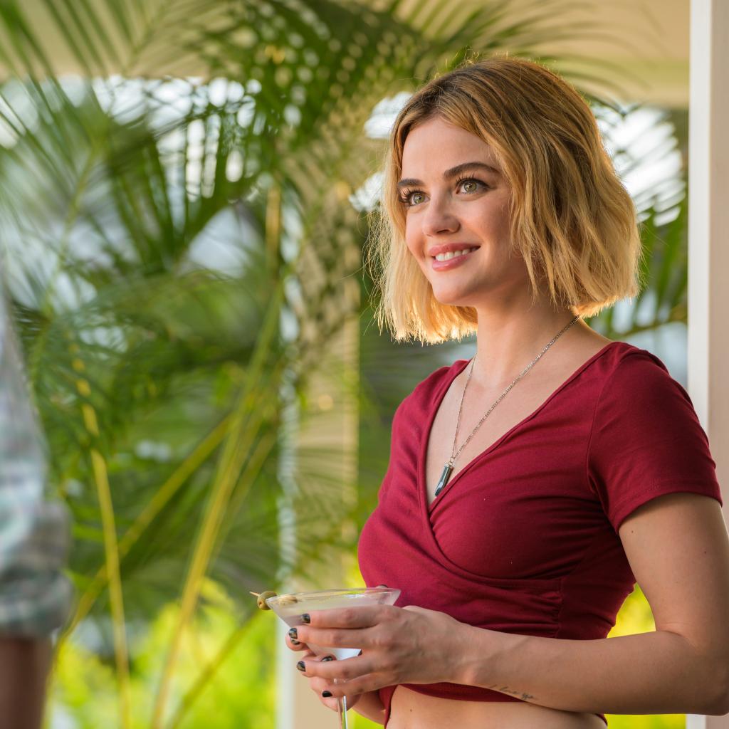 Wallpaper Smiling actress Lucy Hale with a cocktail in her hand