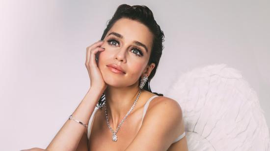Wallpaper Beautiful British actress Emilia Clark in a white dress
