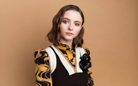 Wallpaper Young actress Thomasine Mackenzie on wall background