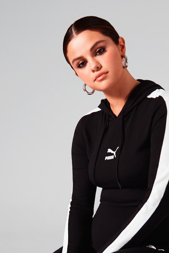 Wallpaper Actress, model Selena Gomez in a tracksuit on a gray background