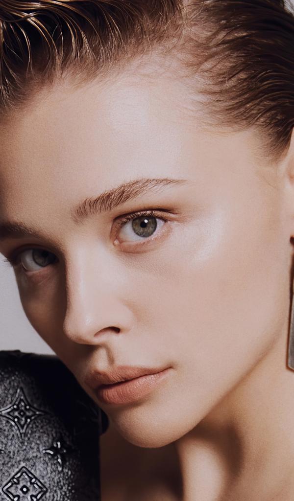 Wallpaper Actress Chloe Grace Moretz face close-up on a gray background