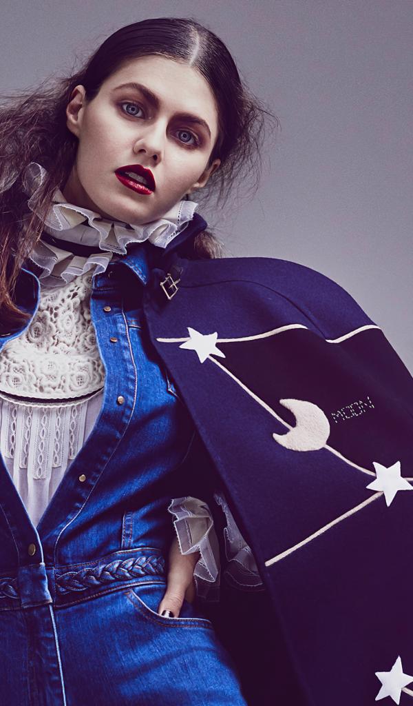 Wallpaper Actress Alexandra Daddario in a cape on a gray background