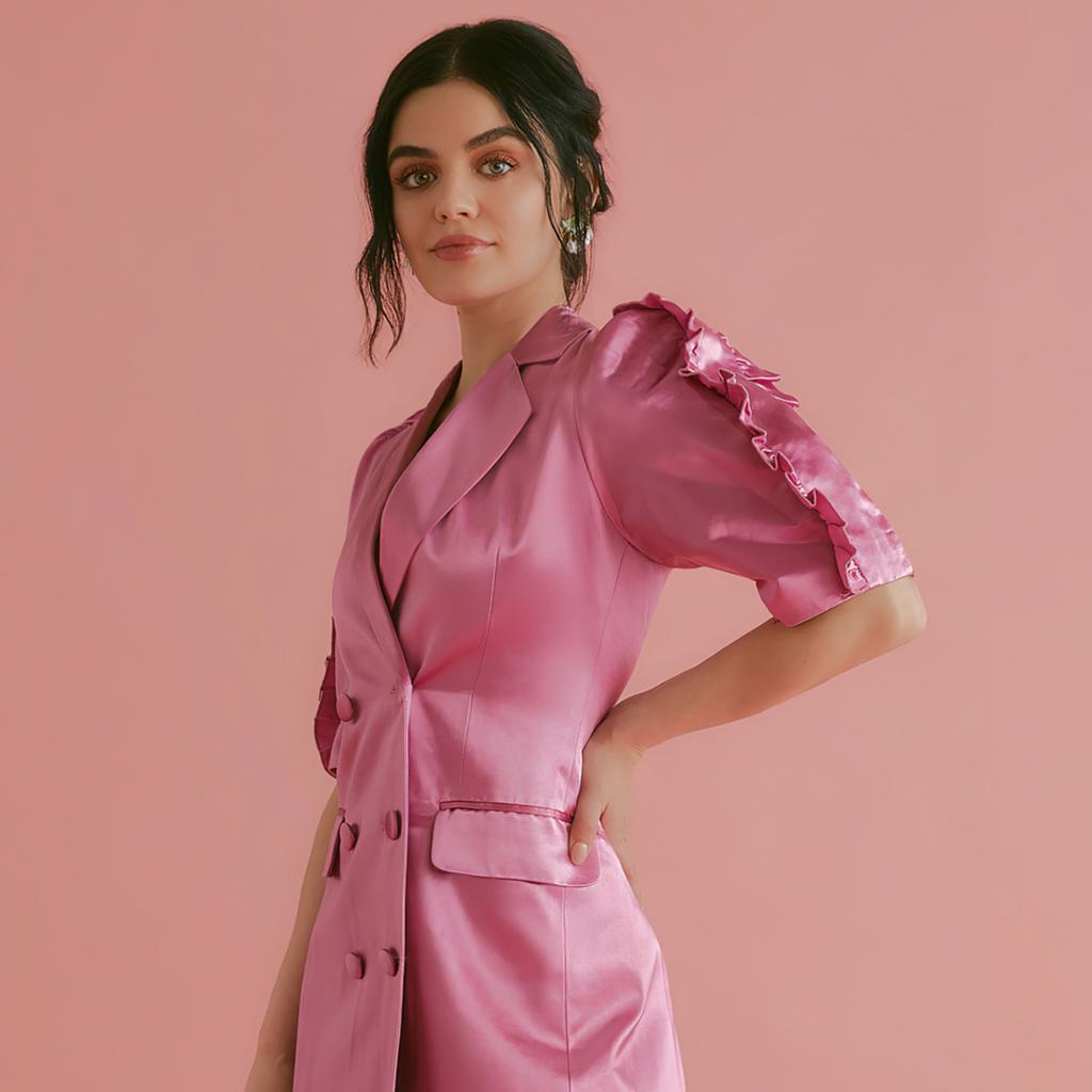 Wallpaper American actress Lucy Hale in a pink dress