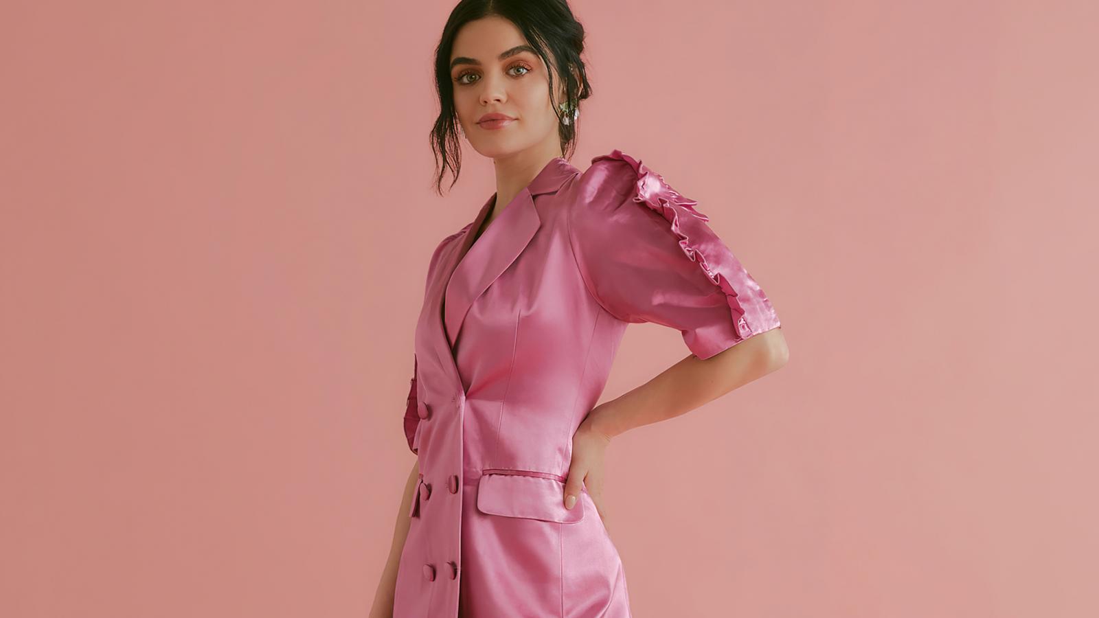 Wallpaper American actress Lucy Hale in a pink dress