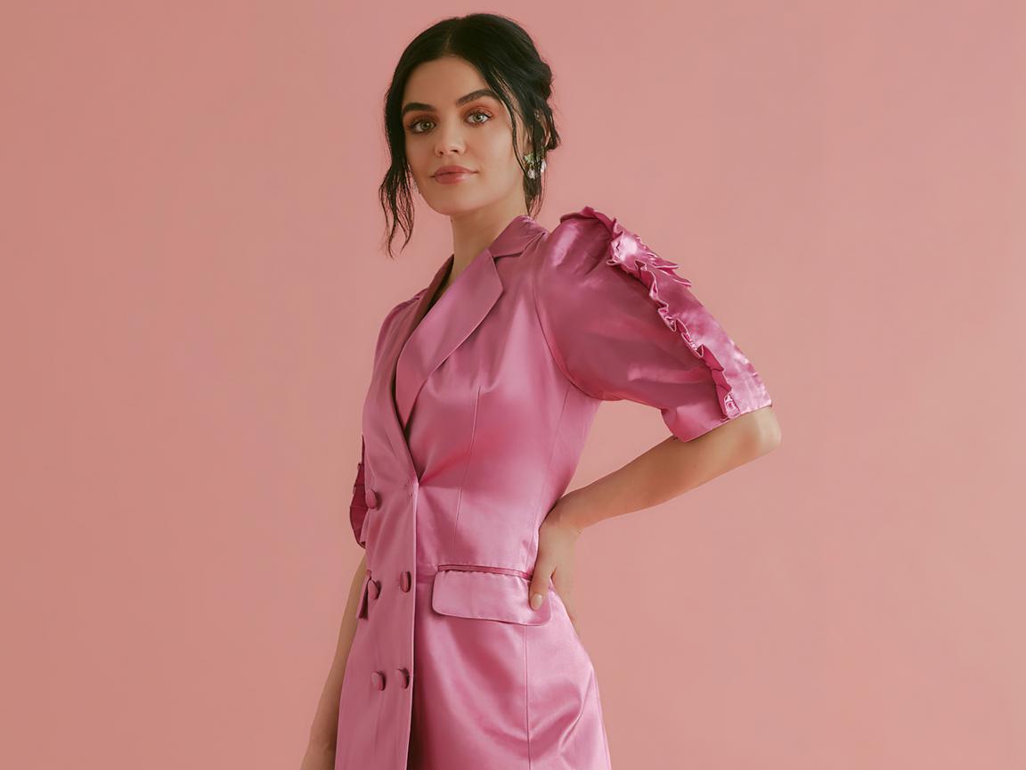 Wallpaper American actress Lucy Hale in a pink dress