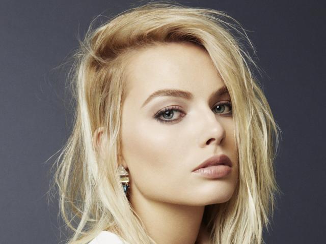Wallpaper Australian actress Margot Robbie close-up on a gray background