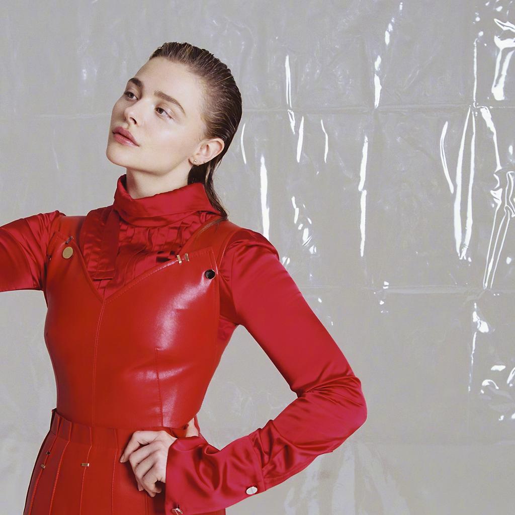 Wallpaper Young actress Chloe Grace Moretz in a red suit