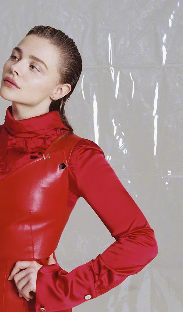 Wallpaper Young actress Chloe Grace Moretz in a red suit