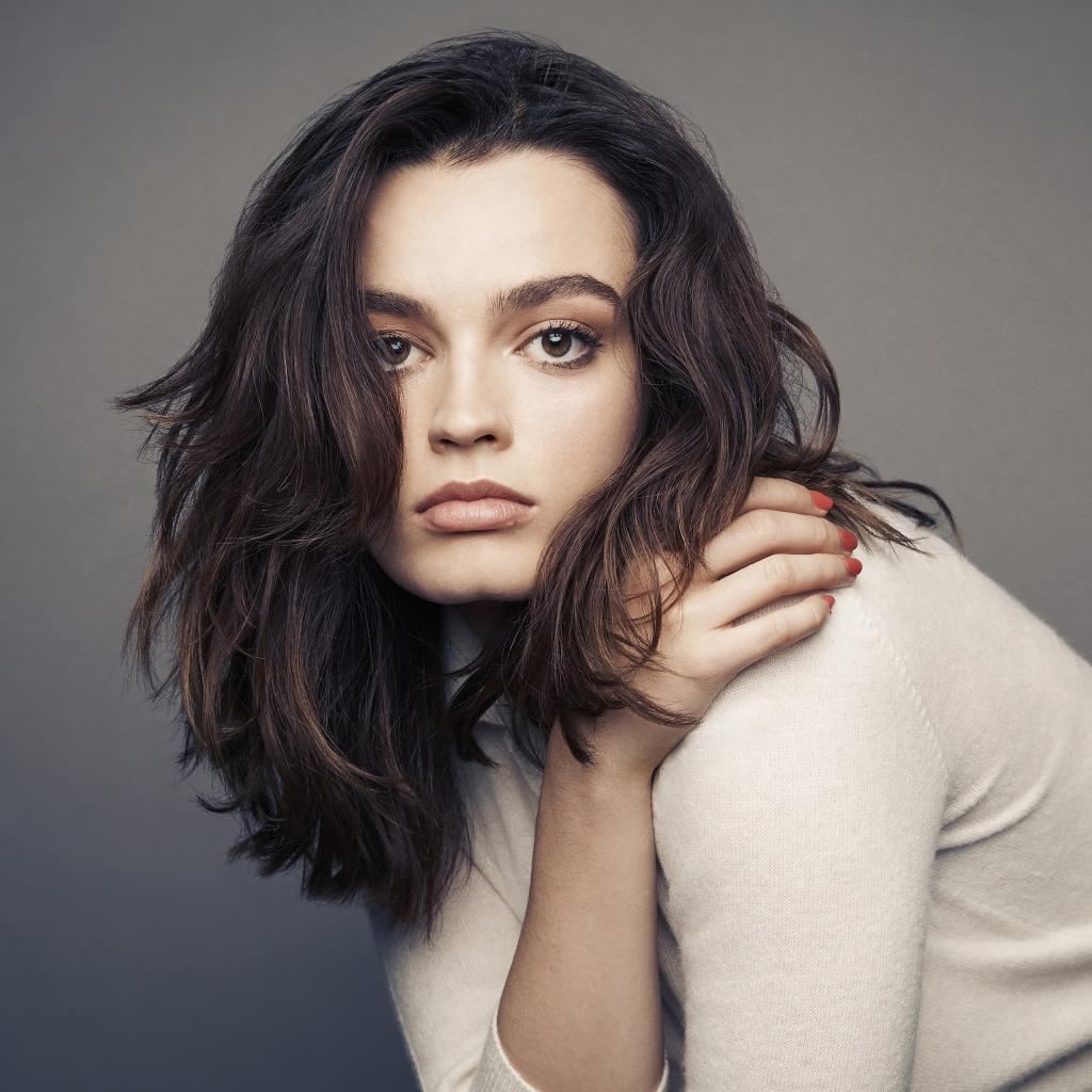 Wallpaper Actress Emma Mackay on a gray background
