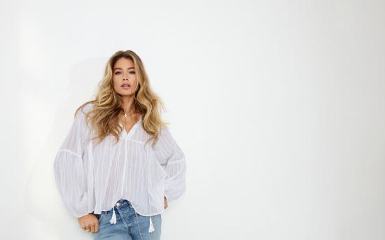 Wallpaper Beautiful actress Dautzen Cruz on a gray wall background