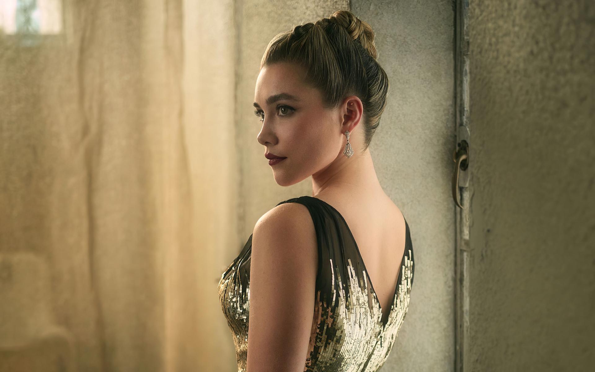 Wallpaper British actress Florence Pugh with beautiful hairdo