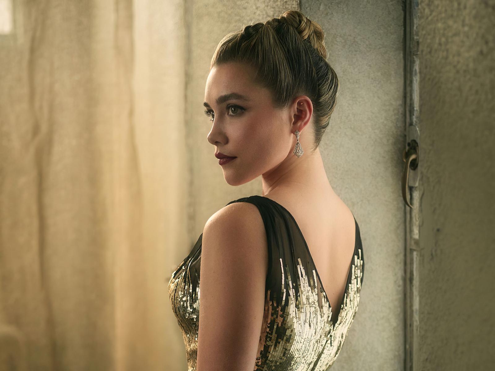 Wallpaper British actress Florence Pugh with beautiful hairdo