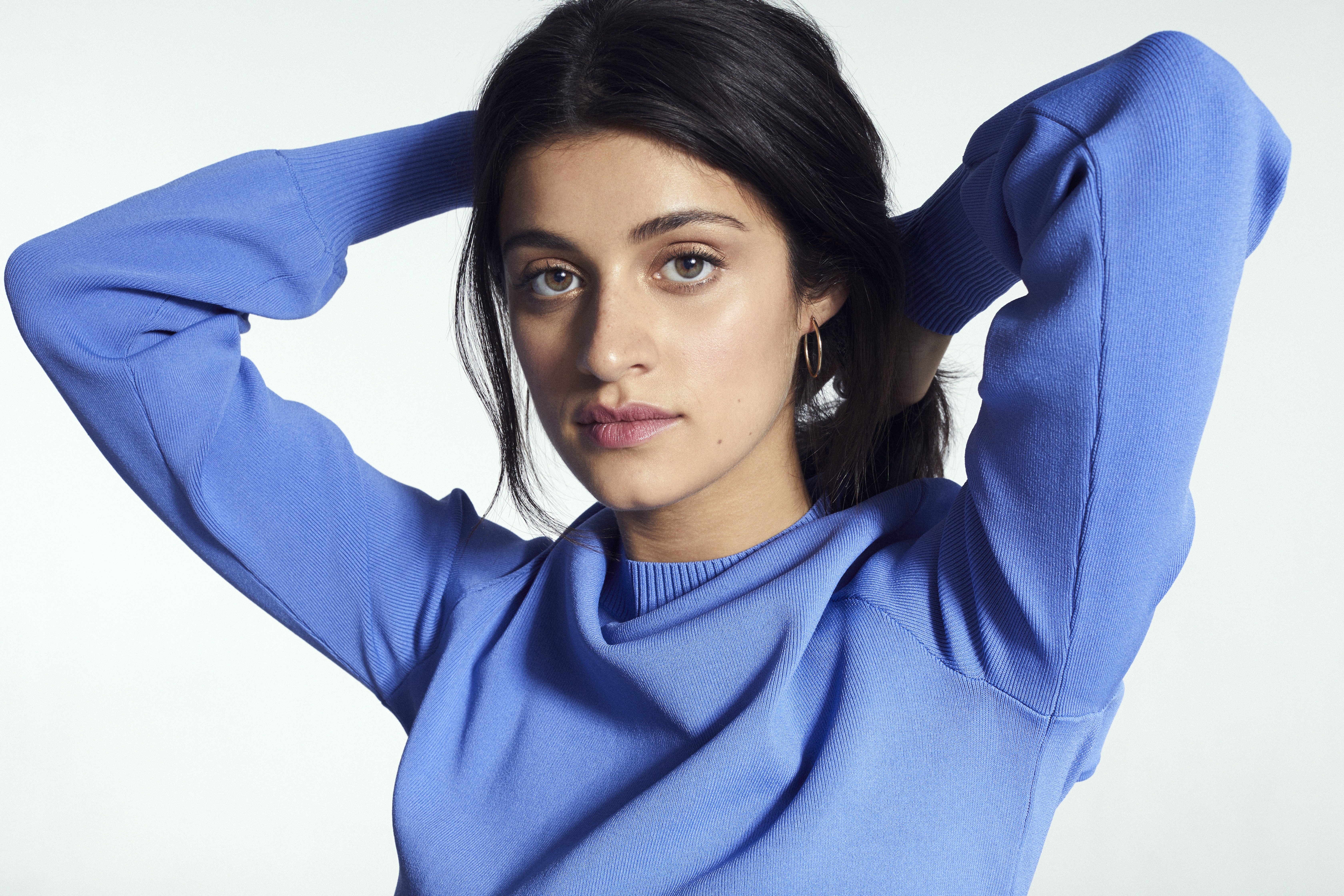 Wallpaper British actress Anya Chalotra in a blue sweater