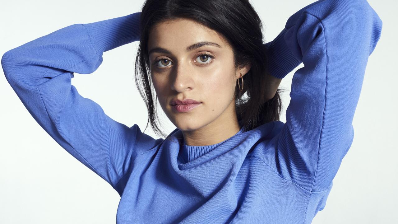 Wallpaper British actress Anya Chalotra in a blue sweater