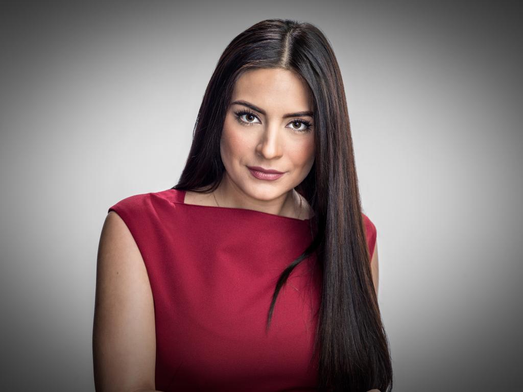 Wallpaper Actress Ana Brenda Contreras in a red dress on a gray background