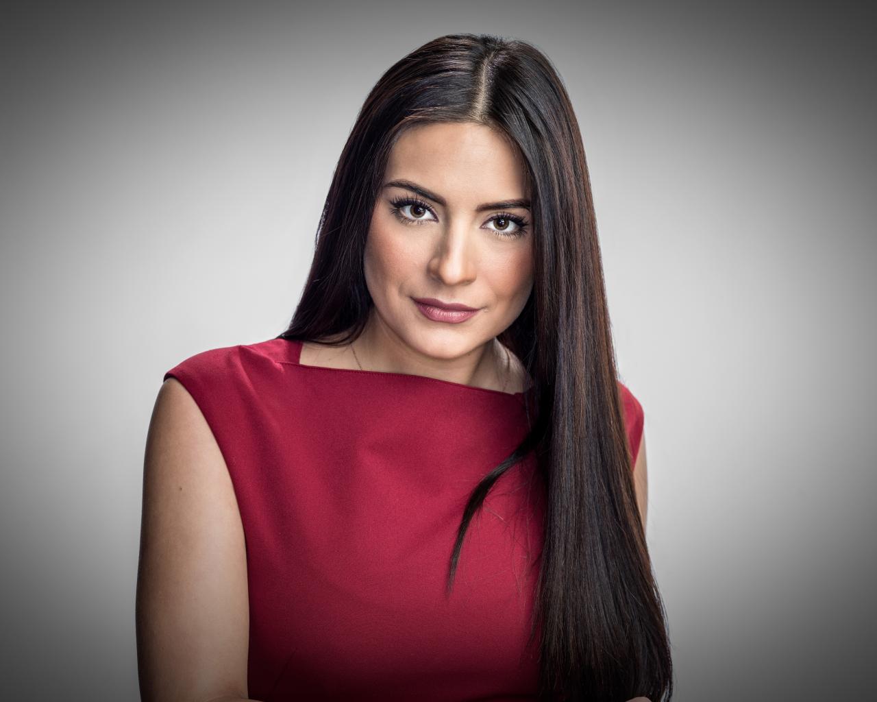 Wallpaper Actress Ana Brenda Contreras in a red dress on a gray background