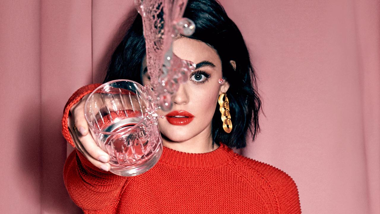 Wallpaper American actress Lucy Hale with a glass of water