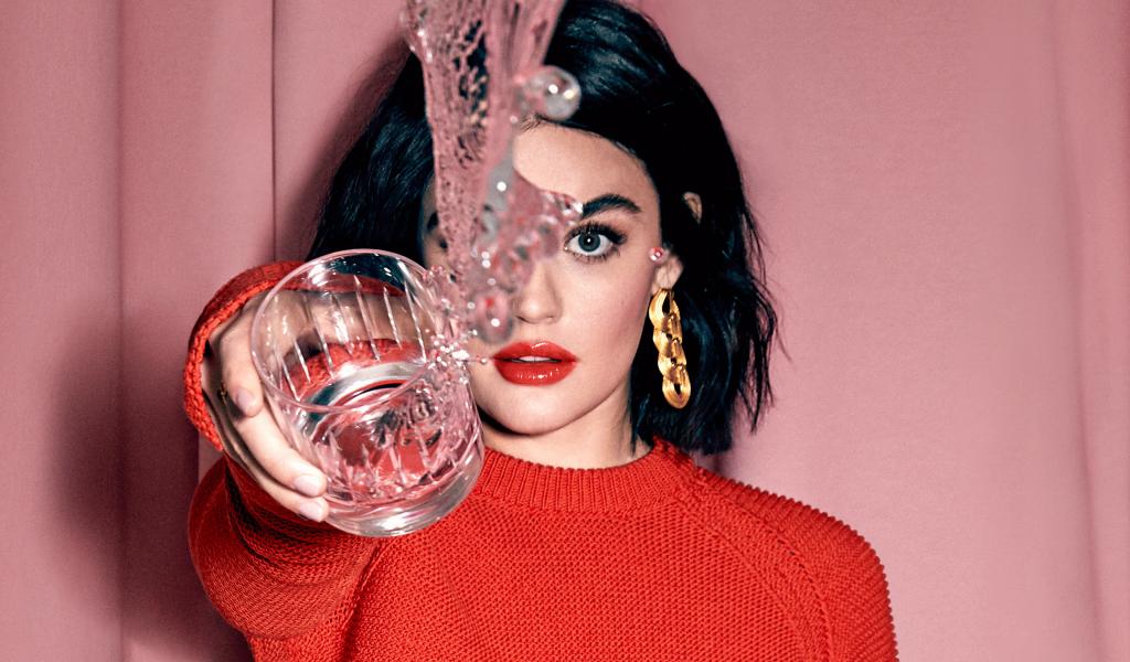 Wallpaper American actress Lucy Hale with a glass of water