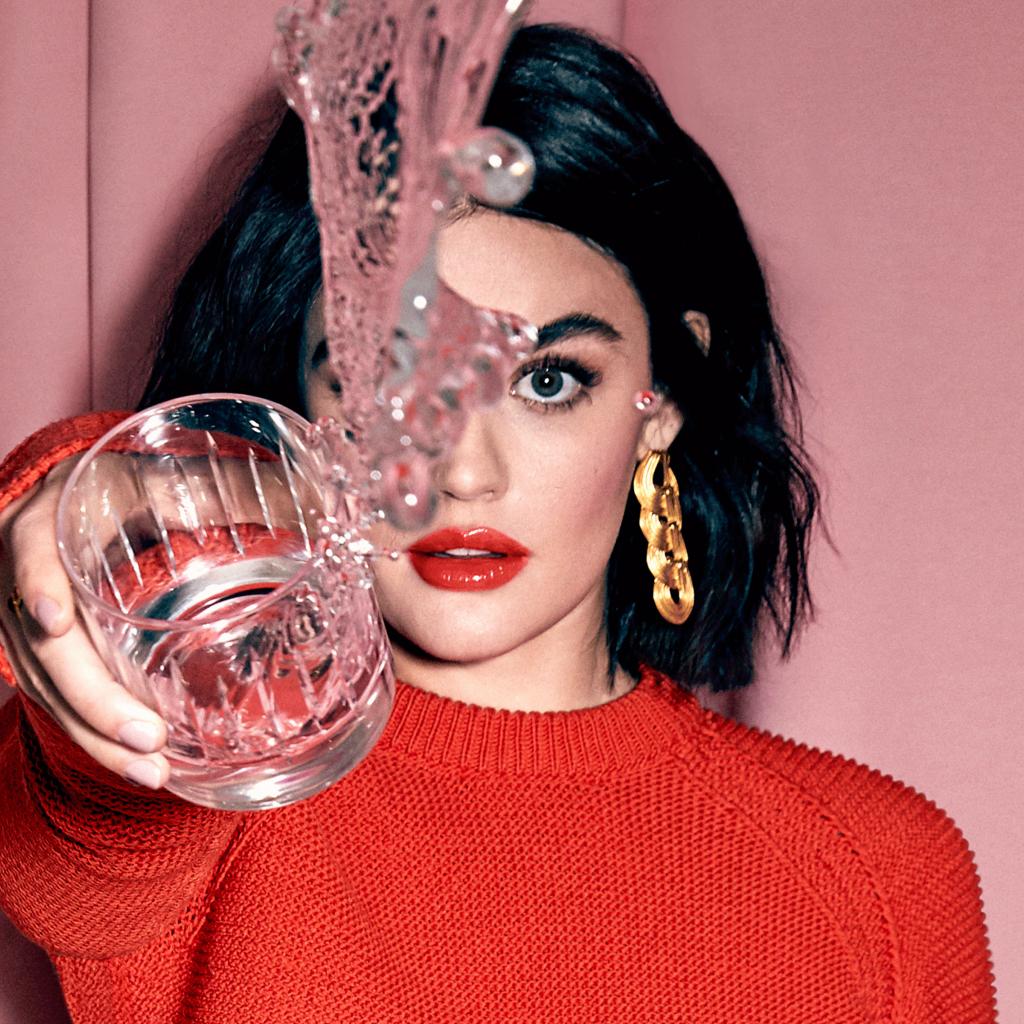 Wallpaper American actress Lucy Hale with a glass of water