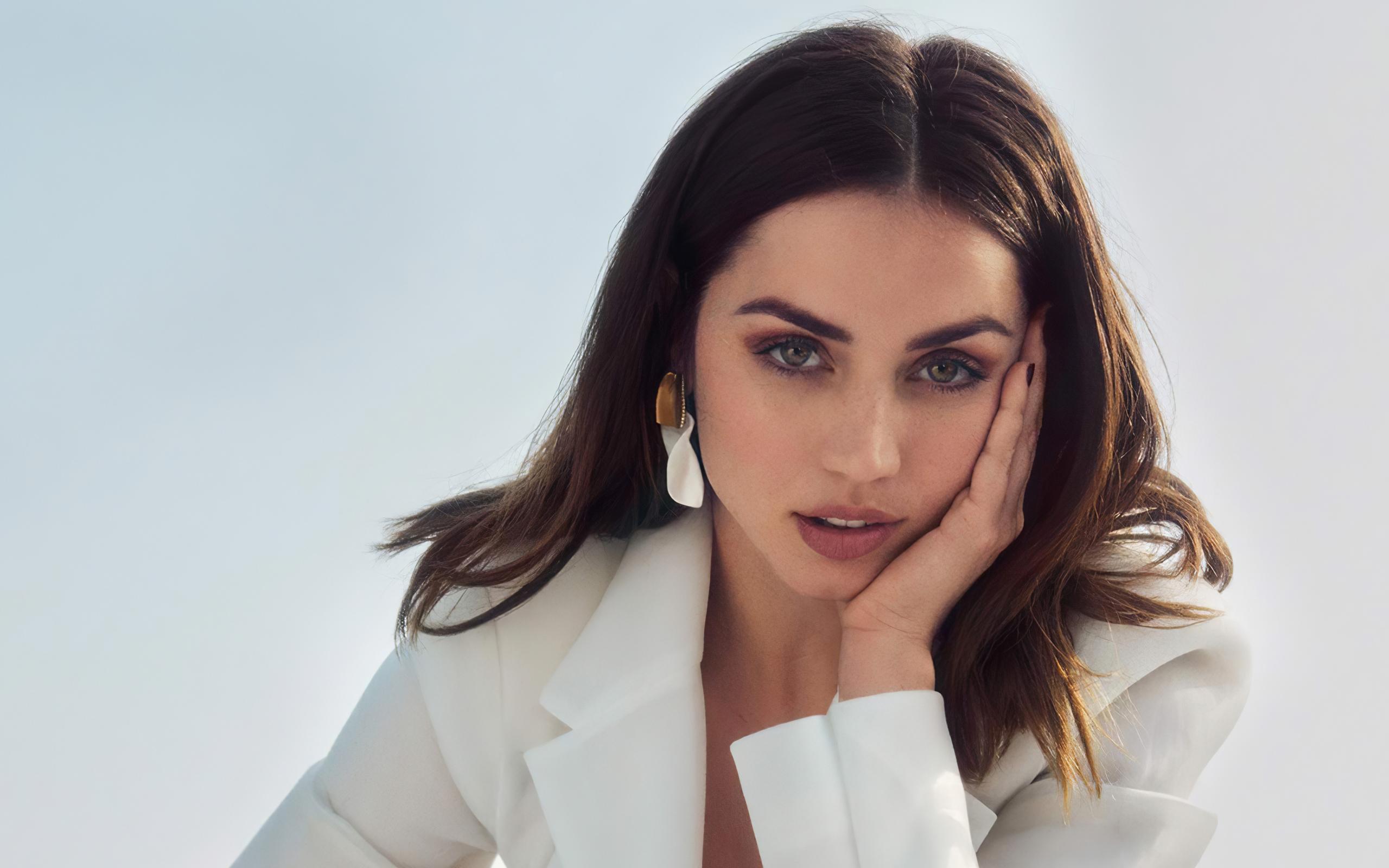 Wallpaper Actress Ana de Armas in a white jacket on a gray background