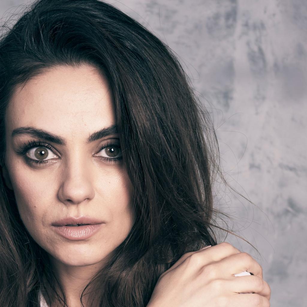 Wallpaper American actress Mila Kunis on a gray background