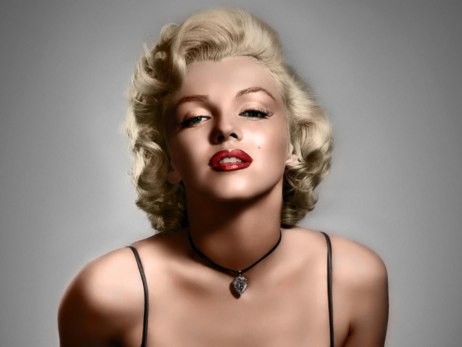 Wallpaper Bright blonde, legendary woman Merlin Monroe on a gray background