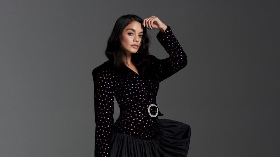 Wallpaper Actress Vanessa Hudgens in a suit on a gray background