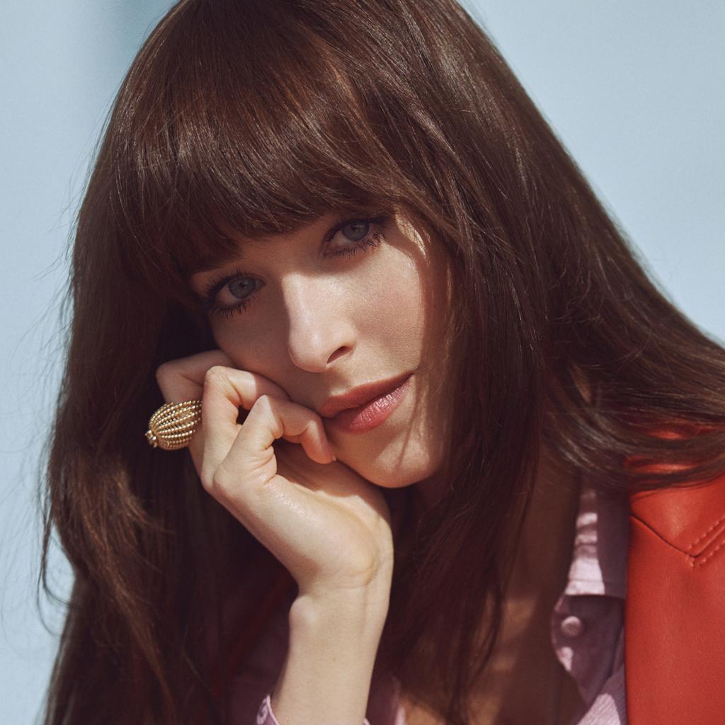 Wallpaper American actress Dakota Johnson in a red jacket