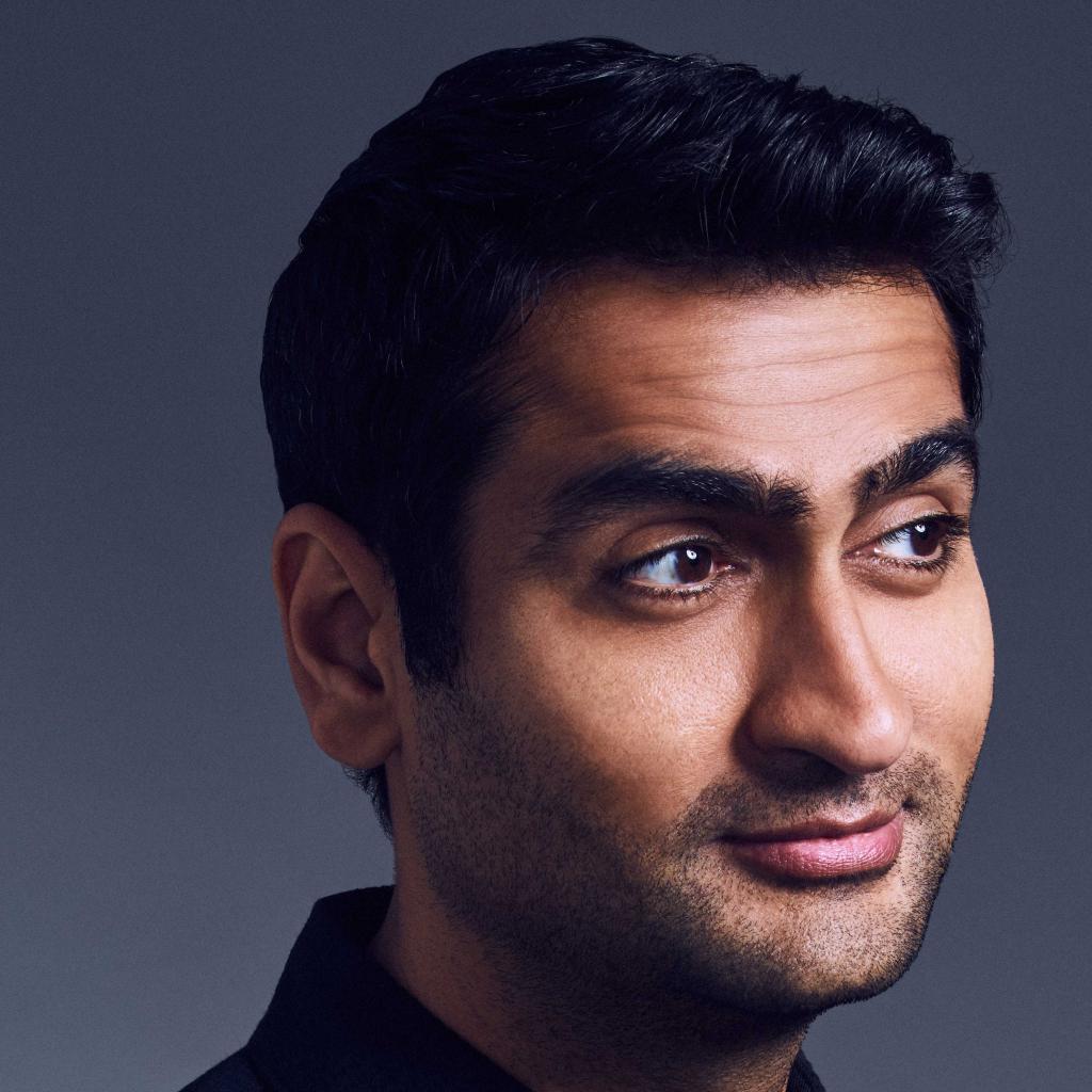 Wallpaper Actor Kumale Nanjiani on a gray background