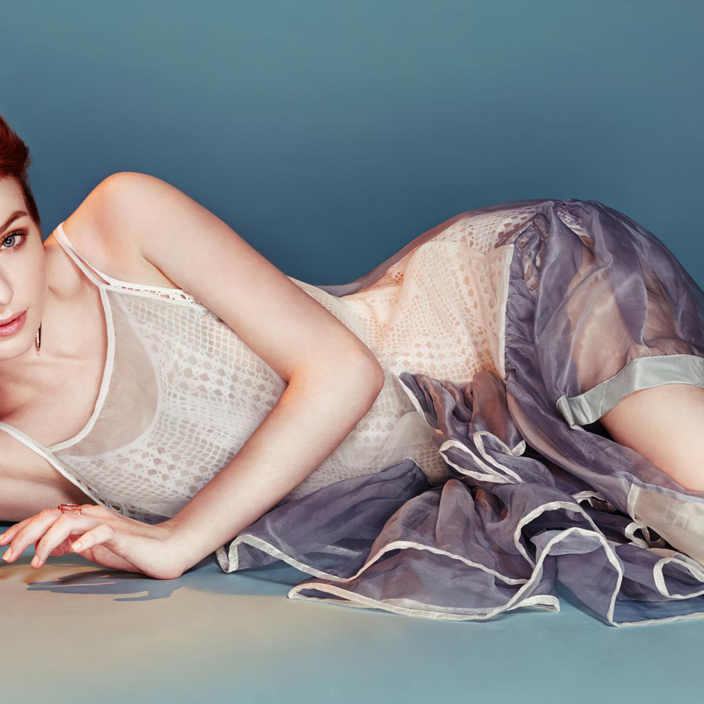 Wallpaper English actress Eleanor Tomlinson lies in a dress on a gray background