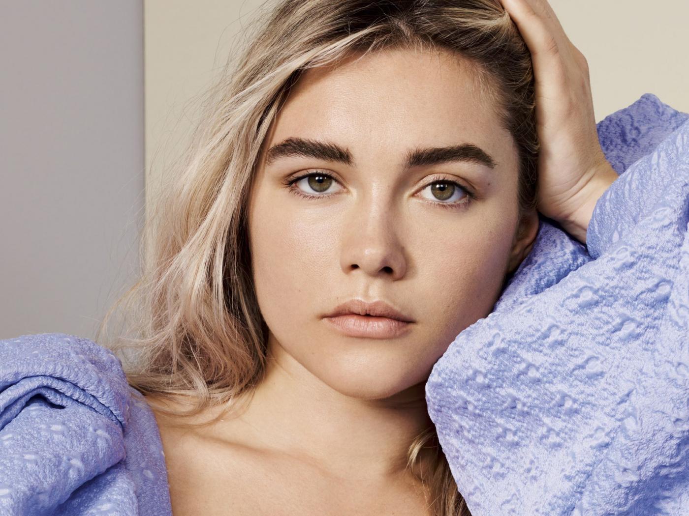 Wallpaper British actress Florence Pugh with hand in hair