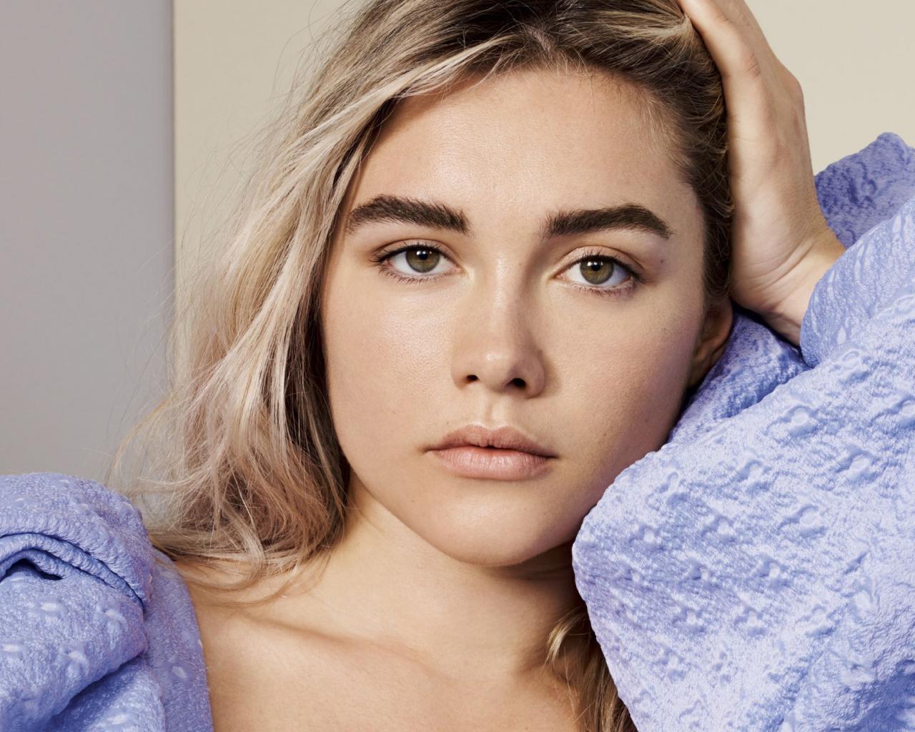 Wallpaper British actress Florence Pugh with hand in hair