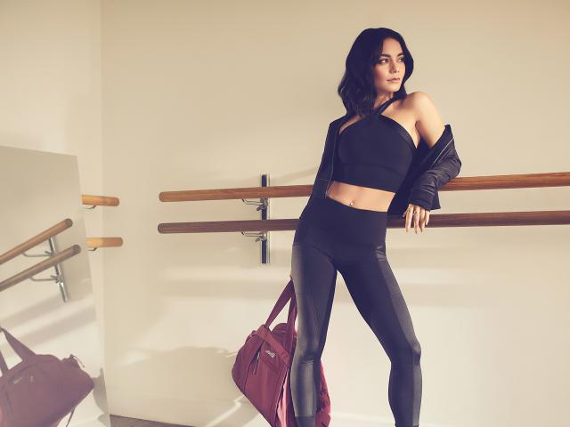 Wallpaper Actress Vanessa Hudgens in a black suit in training