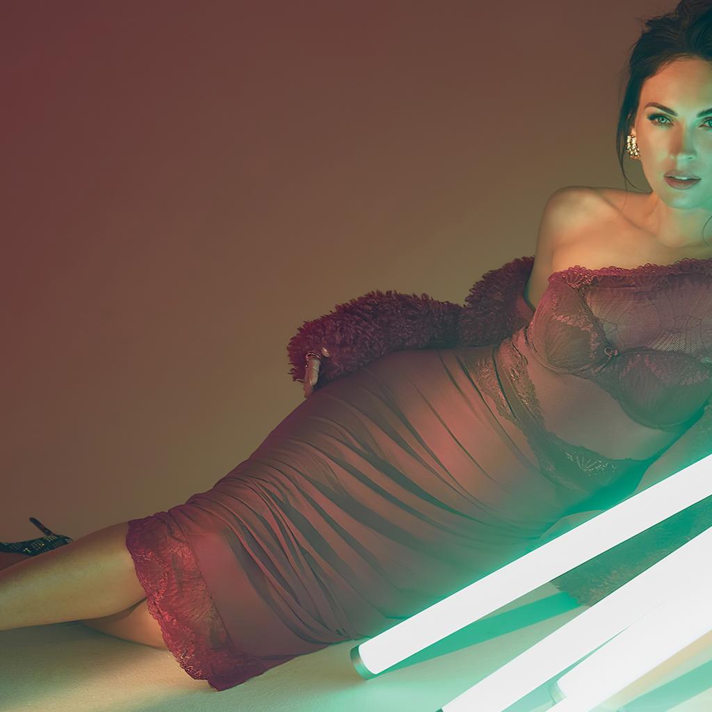 Wallpaper Spectacular actress Megan Fox in a red dress