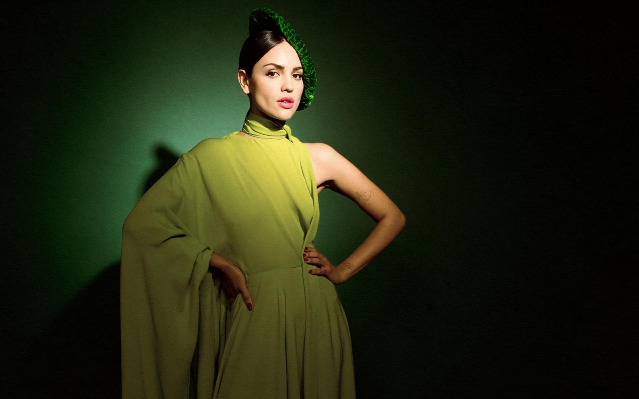 Wallpaper Actress Asa Gonzalez in a dress on a green background