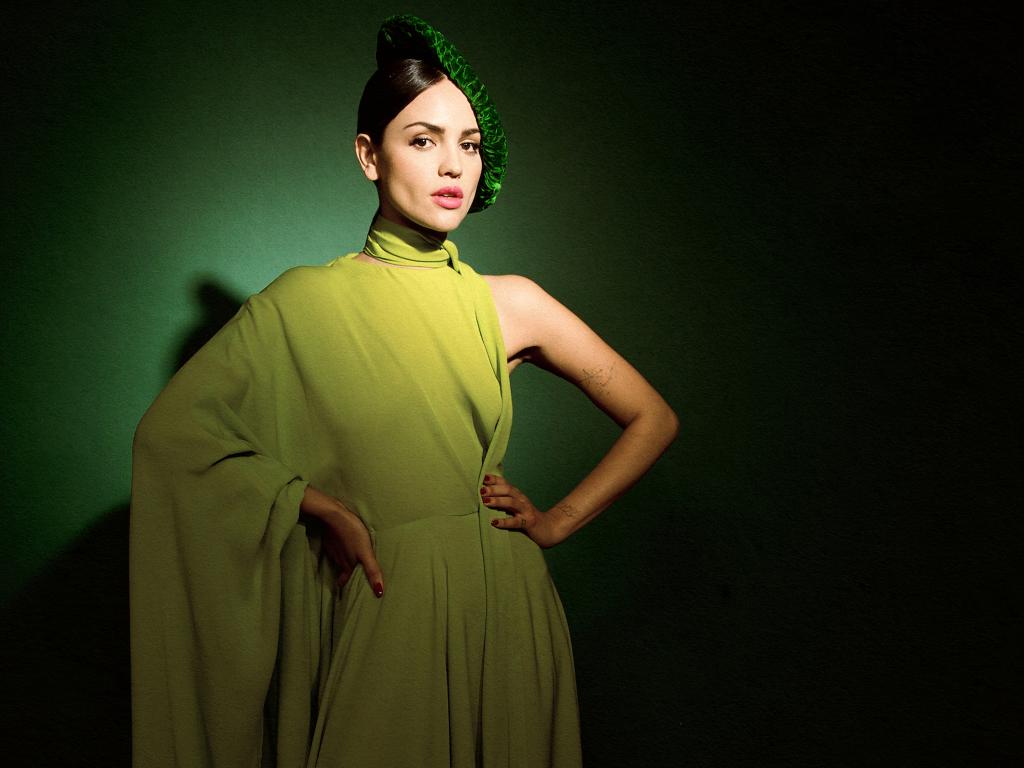 Wallpaper Actress Asa Gonzalez in a dress on a green background