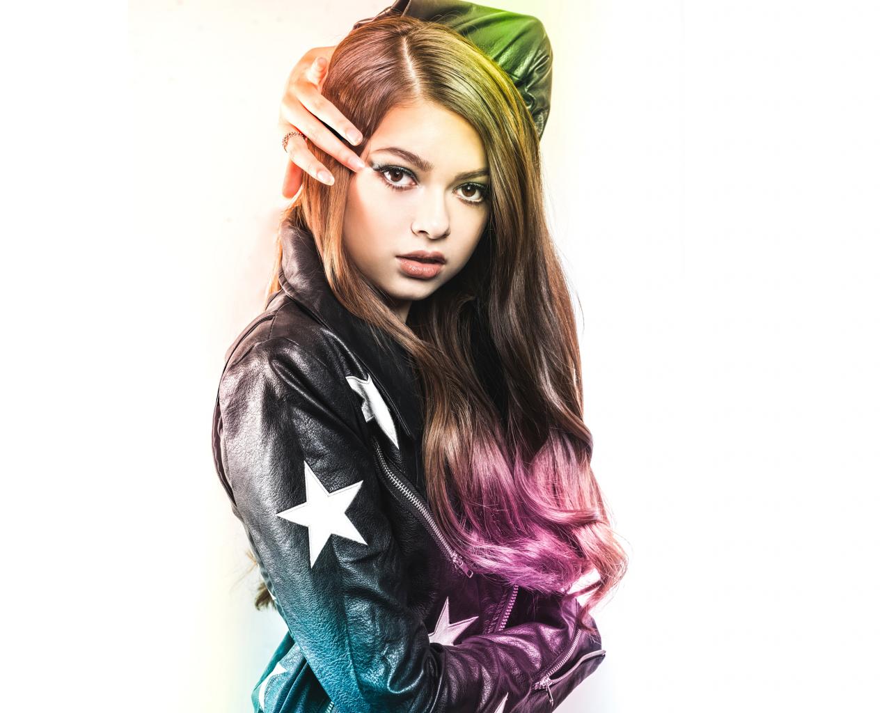 Wallpaper Actress Nikki Khan in a black jacket on a white background