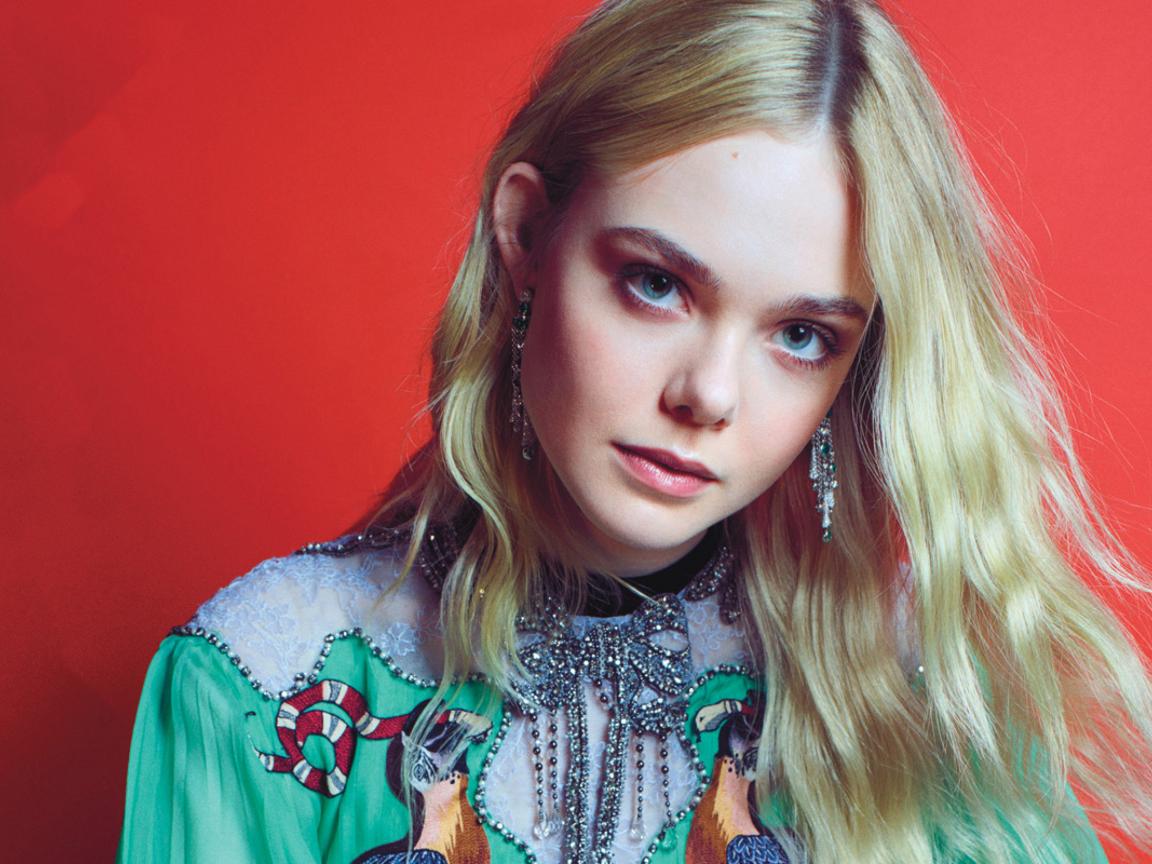 Wallpaper Young blonde actress El Fanning on a red background
