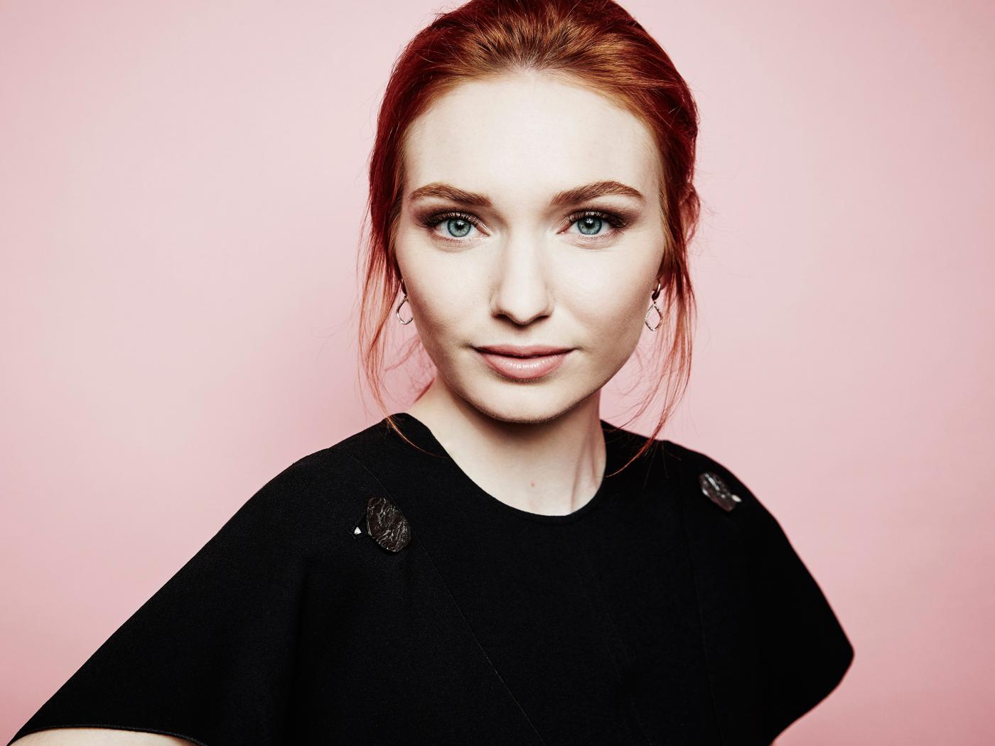 Wallpaper Beautiful red-haired actress Eleanor Tomlinson on a pink background