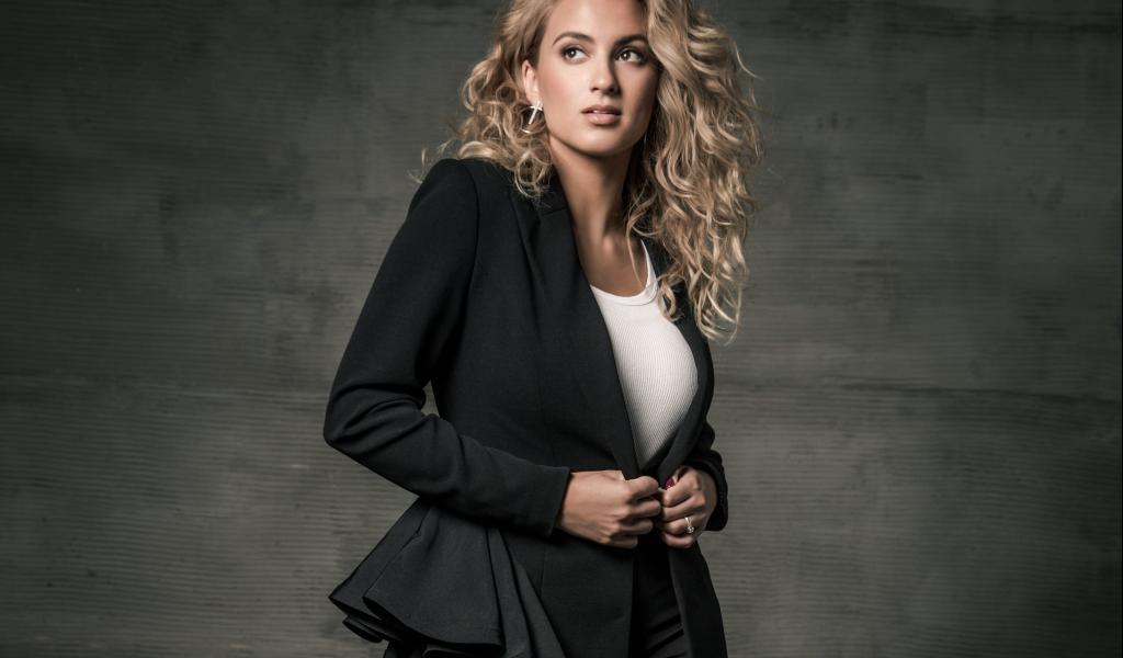 Wallpaper American singer Tori Kelly in a black suit